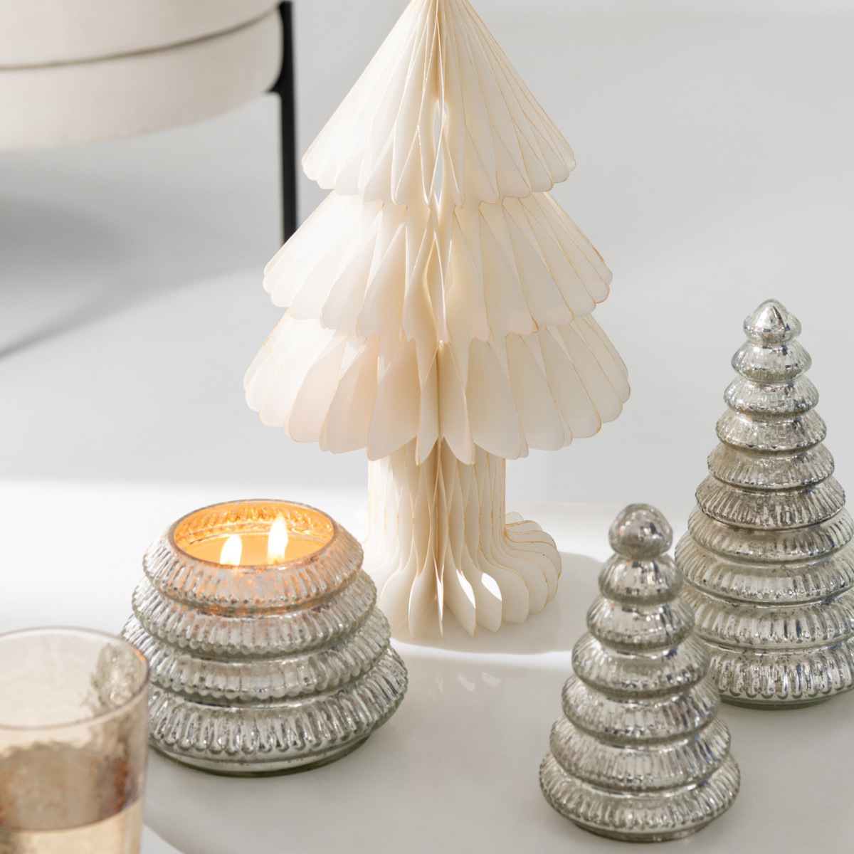 Geurkaars - Boom - Geribbeld Glas - Zilver - Small
