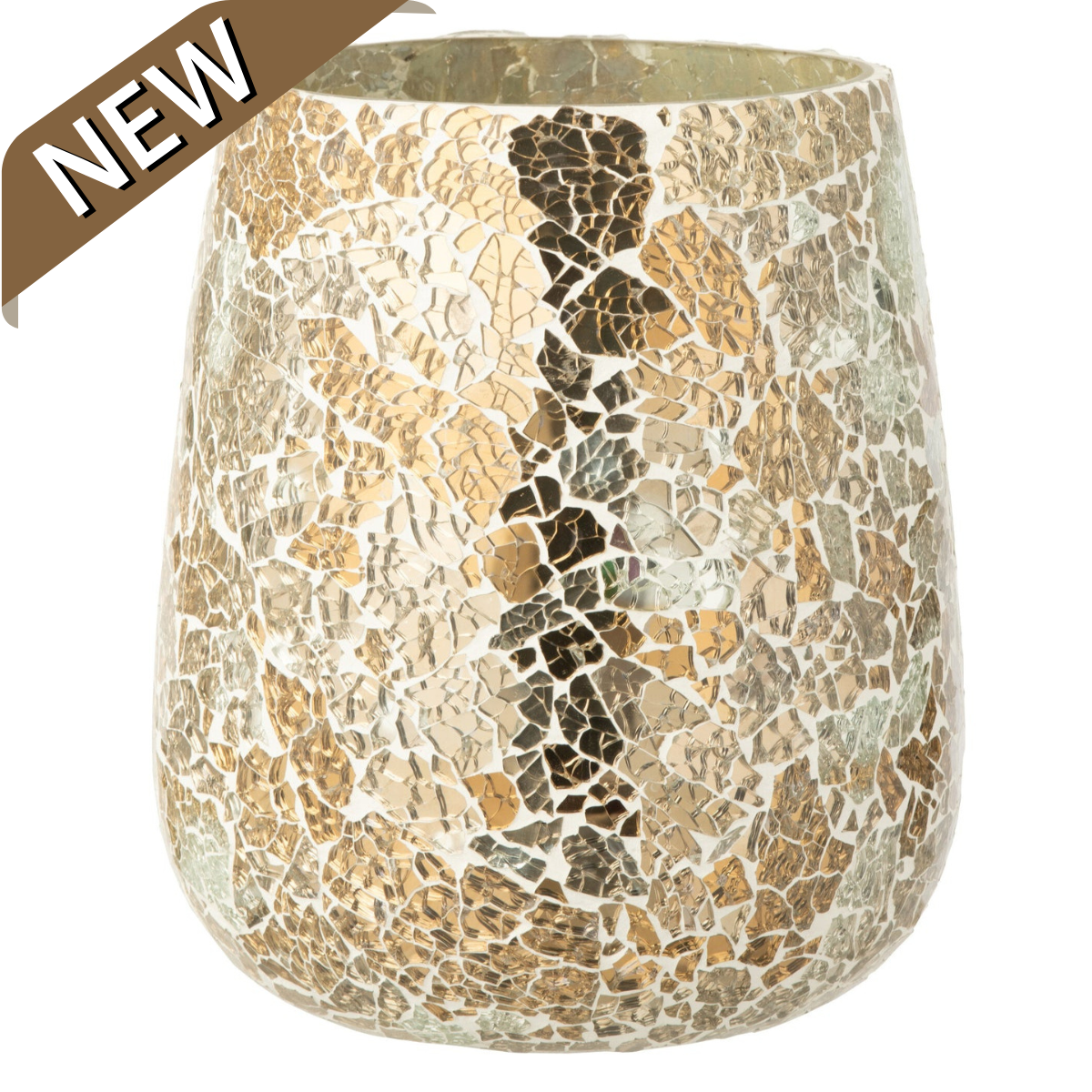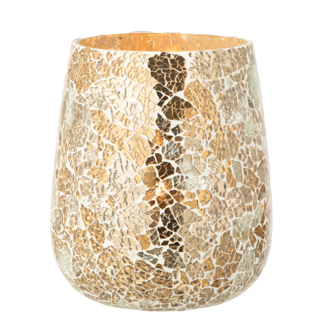 Kaarshouder Gekraakt Glas Goudkleurig - Large