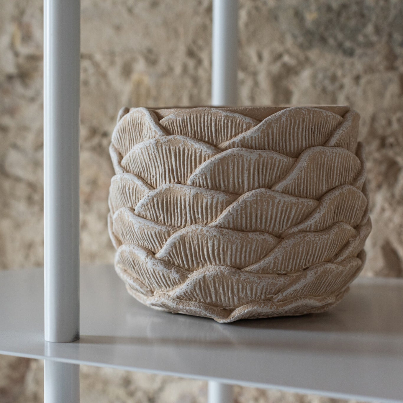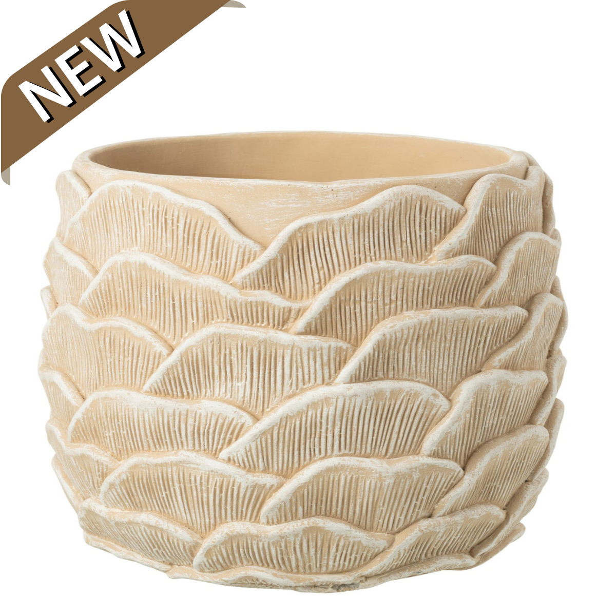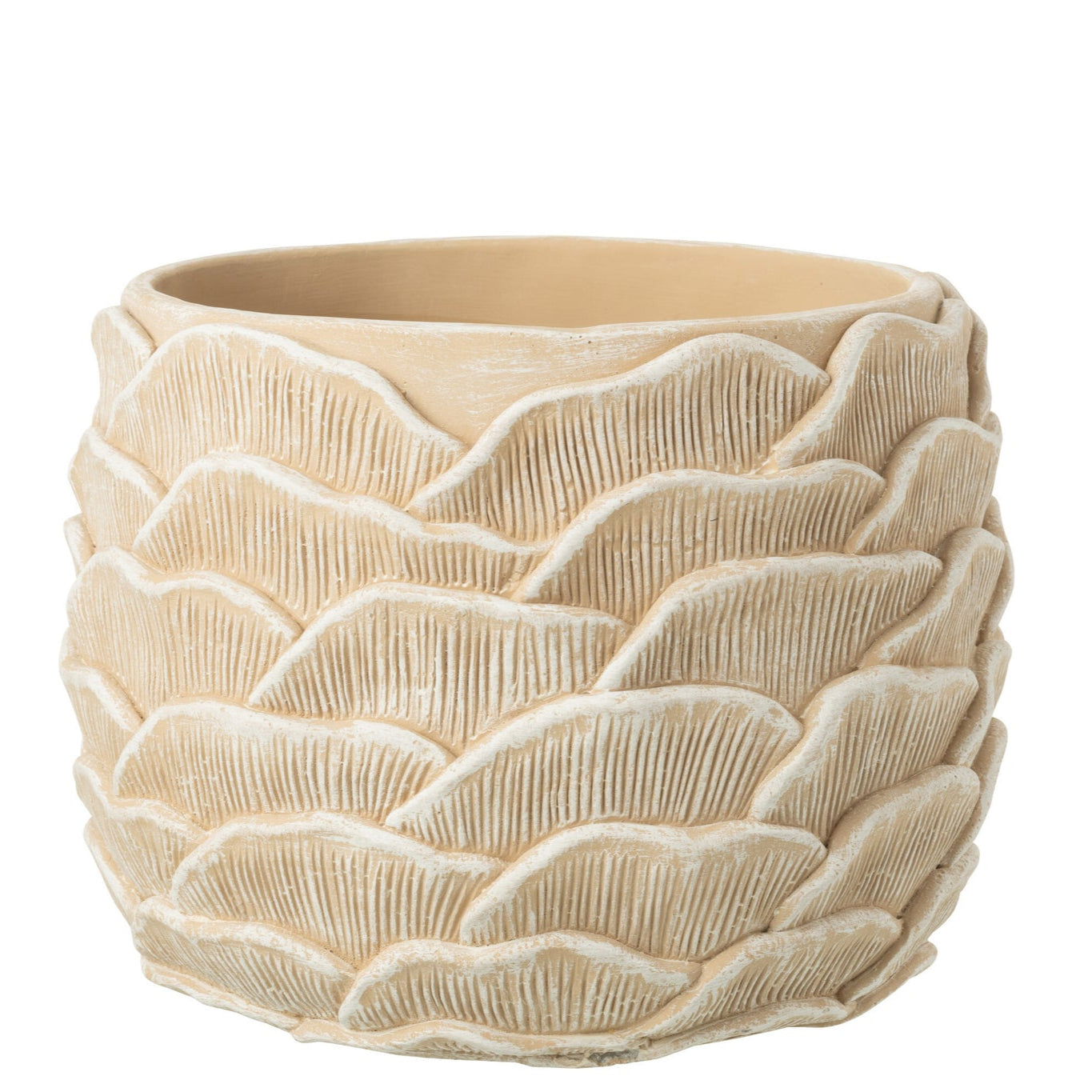 Bloempot - Rond - Reliëf - Cement - Beige - L
