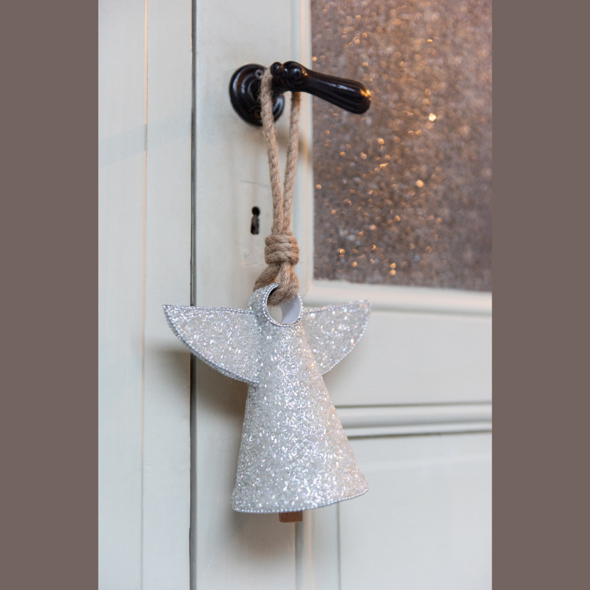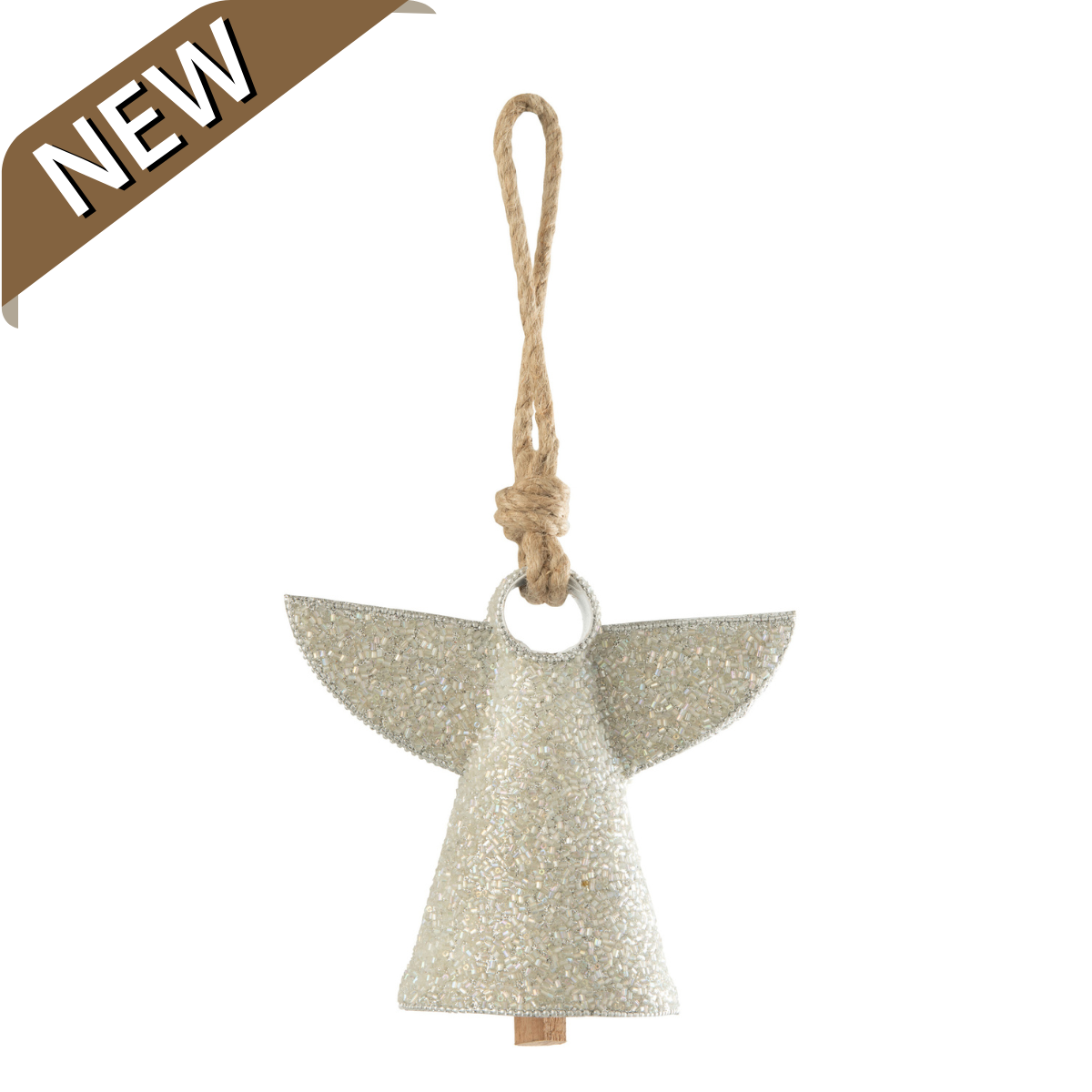 Hanger Bel Engel Ijzer/Kralen Wit/ Zilver