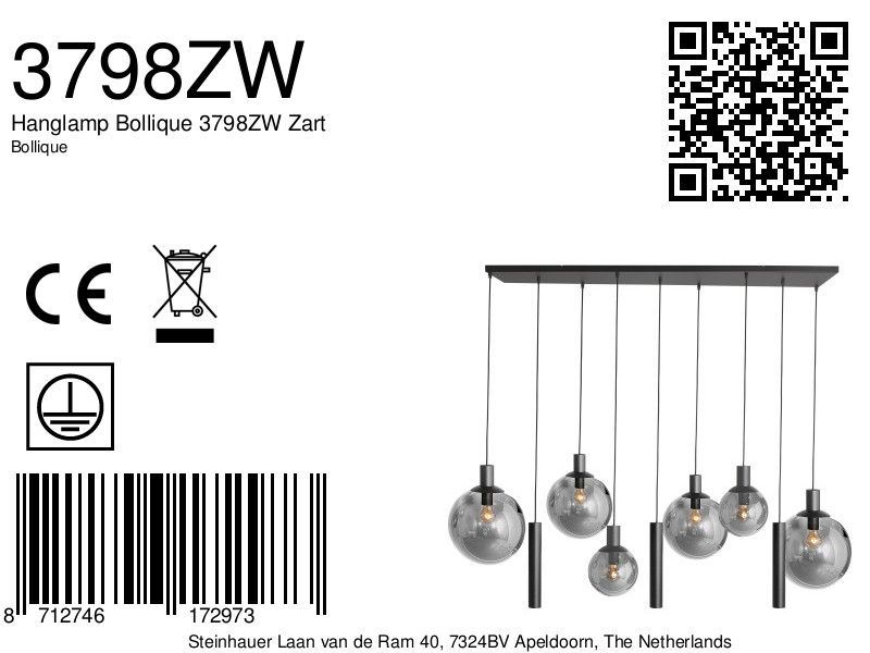 Hanglamp - Bollique - 3798ZW - Zwart - 9 Lichts