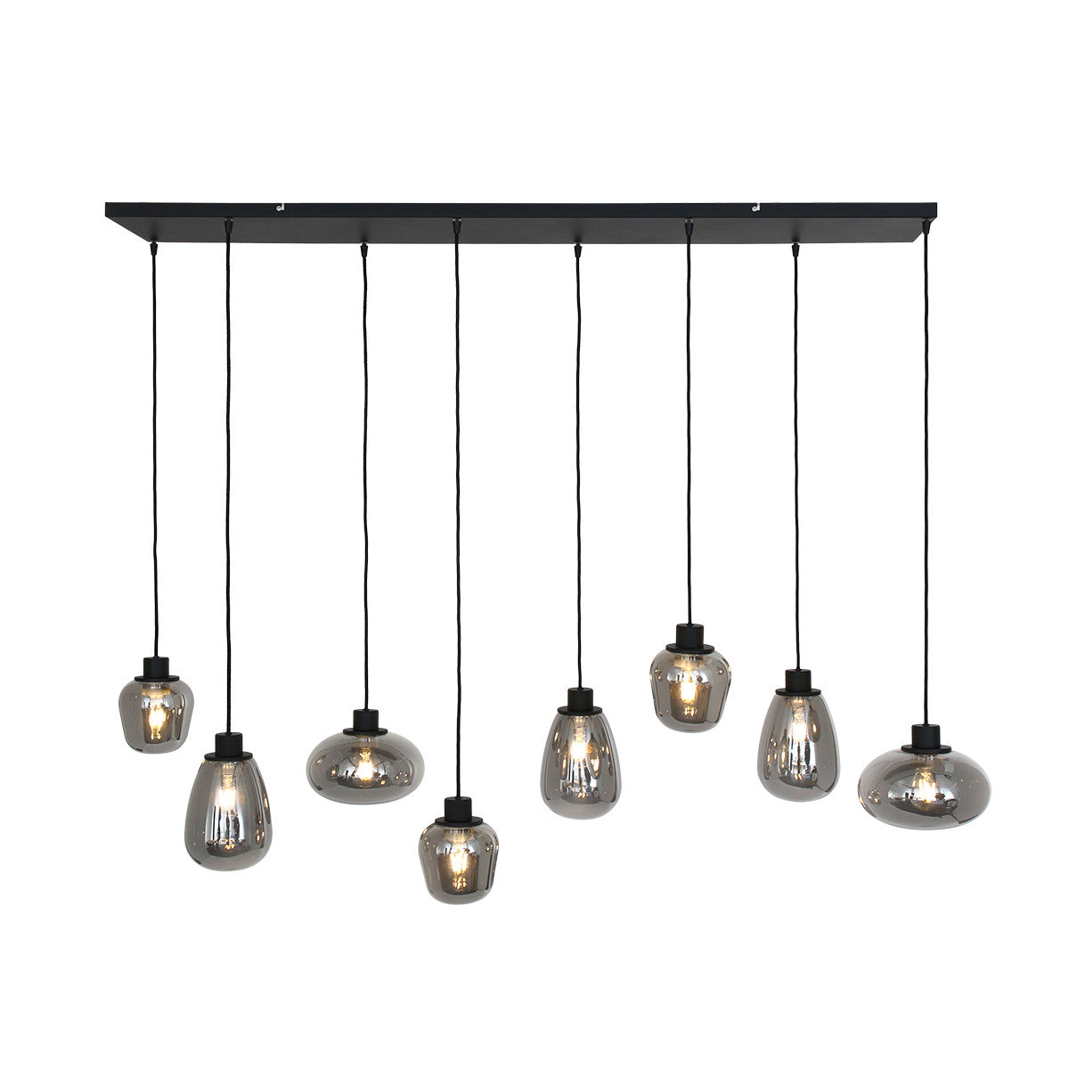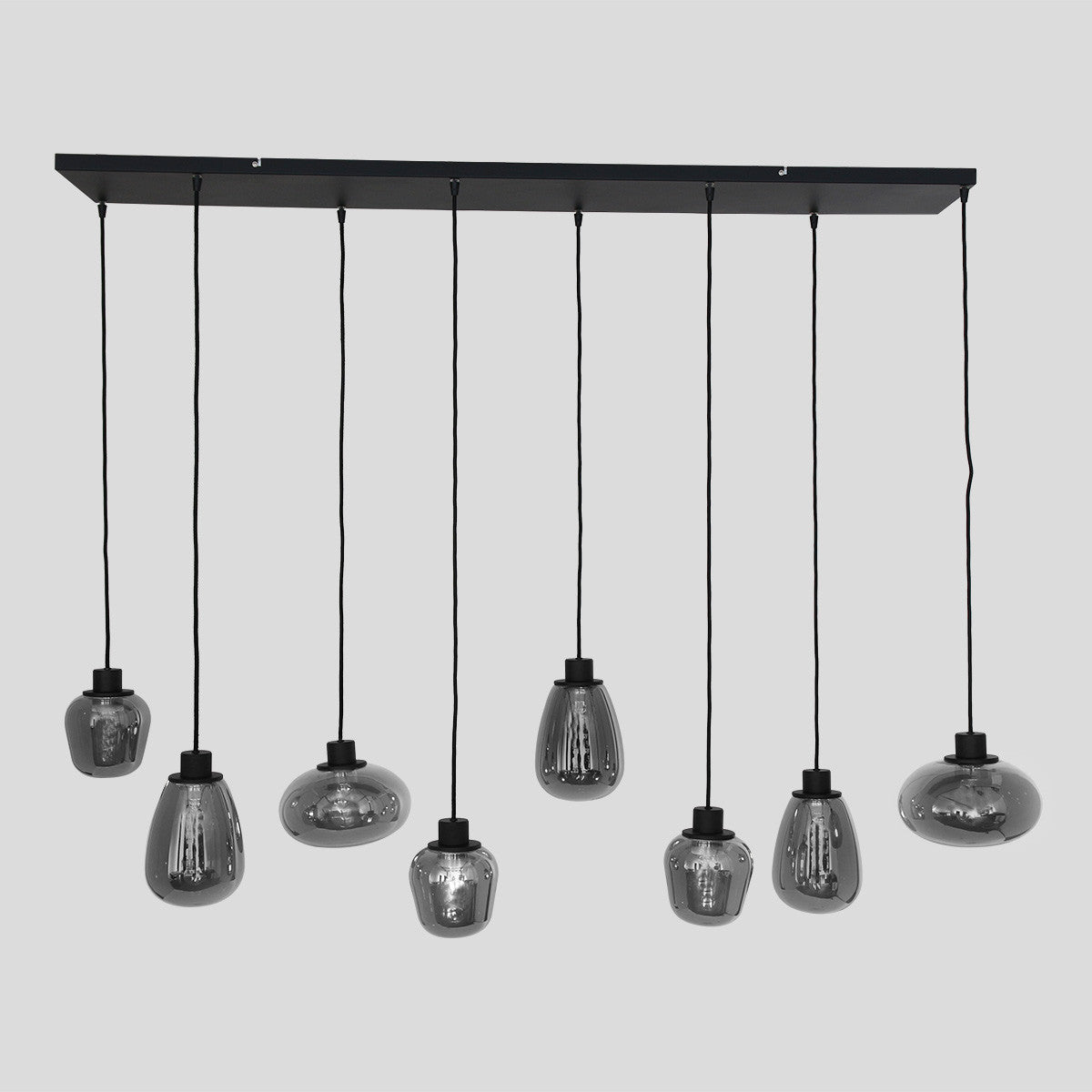 Hanglamp 8-lichts uit de Reflexion serie. De 8-lichts hanglamp is vervaardigd uit staal en glas. Elke lichtbol is afzonderlijk in hoogte, tijdens montage tot maximaal 160 centimeter, kan u een speels effect creëren. De Reflex is voorzien van acht E27 (grote) fittingen en geschikt voor lichtbronnen tot maximaal 40 watt, deze kunnen niet worden ingedeeld.