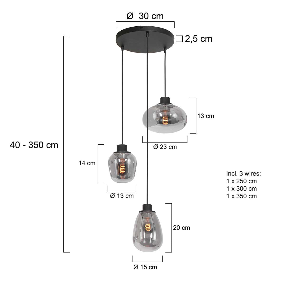 Hanglamp - Reflexion - 3079ZW - Zwart - 3 Lichts - E27 Fitting