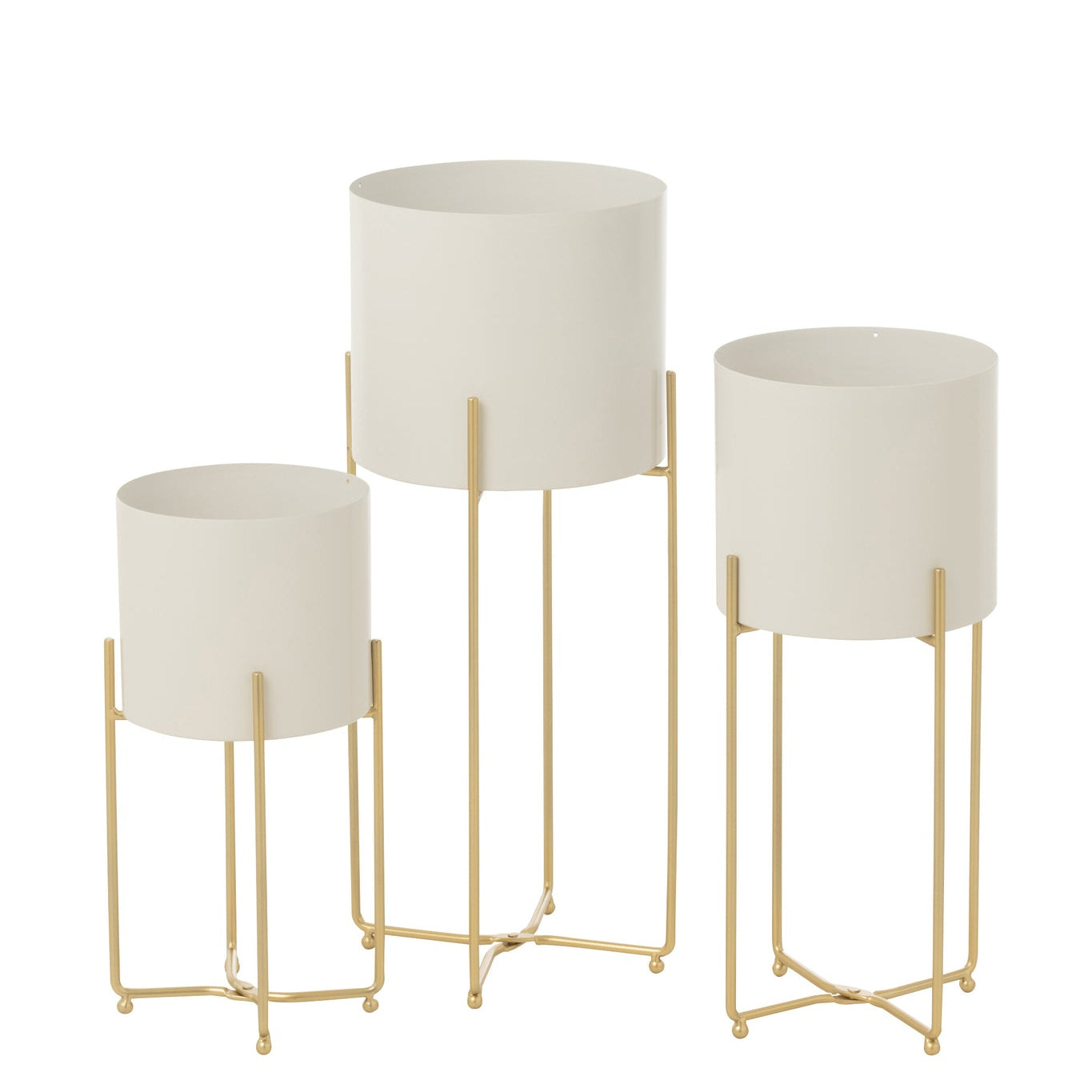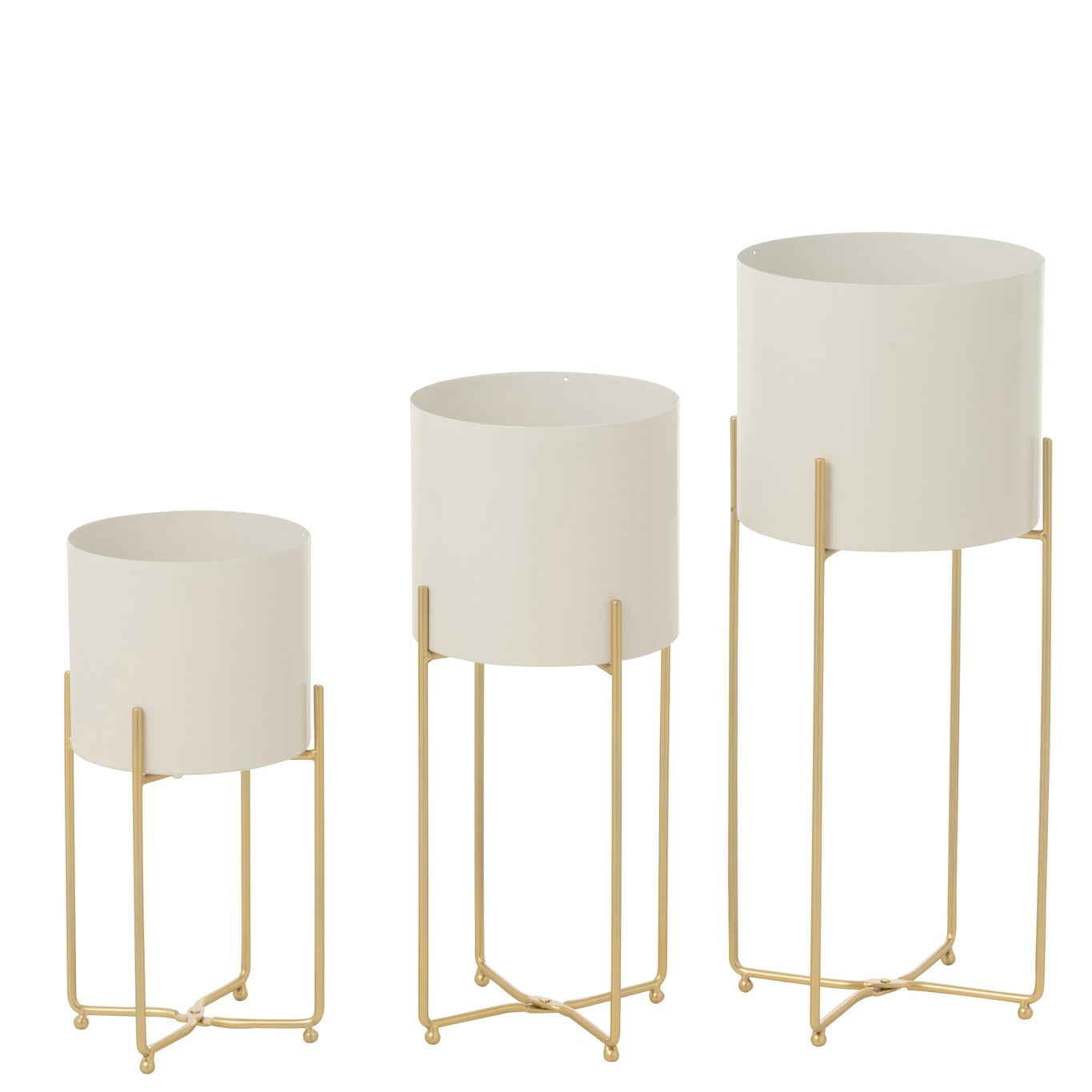Bloempotten - Rond - IJzer - Goud/ Wit - Set van 3