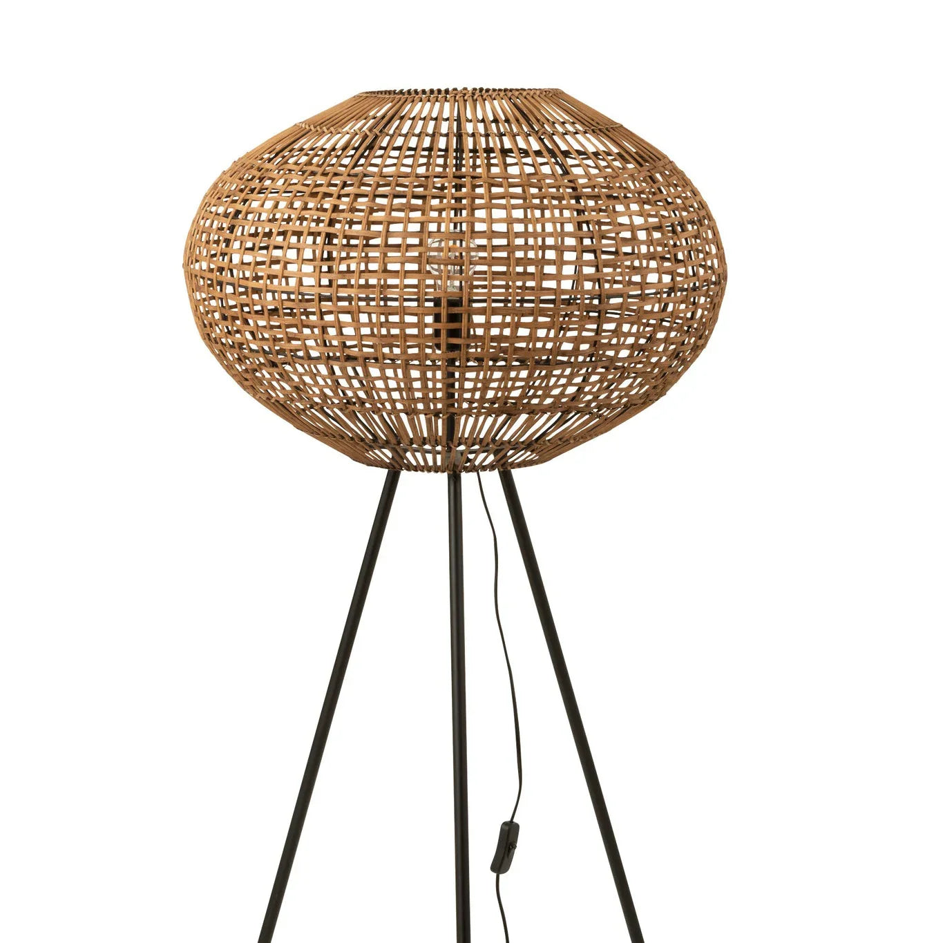 Vloerlamp Driepoot Rotan/ Metaal Naturel/ Zwart