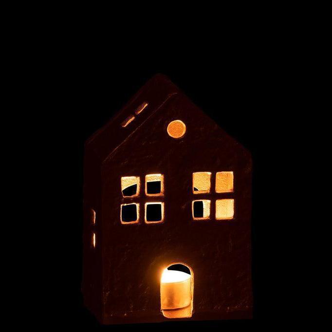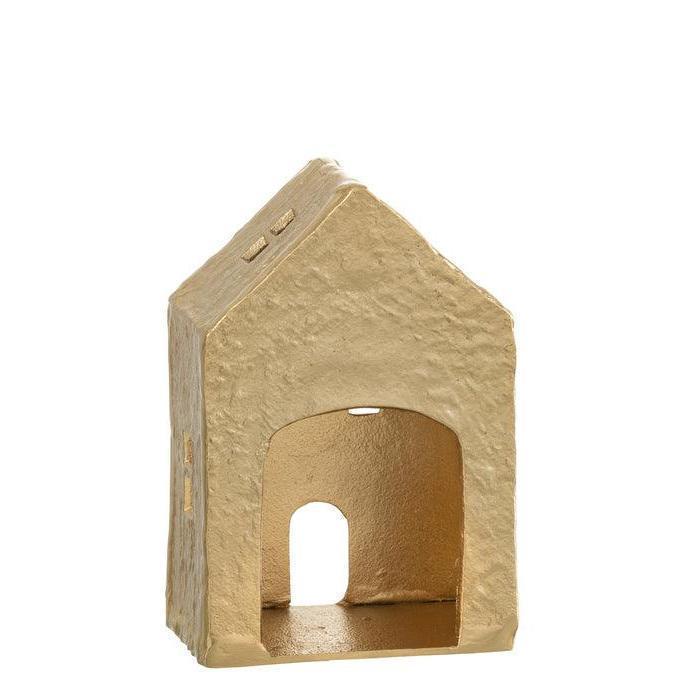 Theelichthouder - Huis - Aluminium - Goud